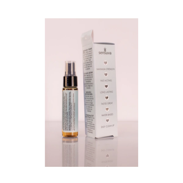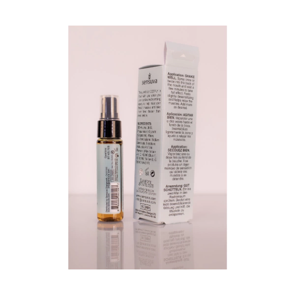 El spray para la garganta Deeply Love You de Sensuva ejerce su deliciosa magia para una sesión de sexo oral más intensa. Este spray tiene sabor y es un placer para su paladar mientras relaja los músculos de la garganta para ayudar a reducir el reflejo nauseoso y, por lo tanto, poder realizar una garganta profunda durante el sexo oral.
