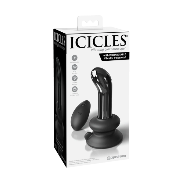 ¡Icicle No. 84 está diseñado para crear la mejor experiencia en excitantes sesiones de sexo en solitario o compartirlo con una pareja para una aventura sexual sublime! Este tapón de punto p de vidrio vibrante multifunción cuenta con una punta curva para un placer preciso y una base acampanada para una fácil recuperación. El control remoto inalámbrico incluido pone el control al alcance de tu mano, o incluso mejor, ¡en manos de tu pareja! ¡Cicla a través de 10 patrones de vibración únicos para orgasmos realmente intensos y emocionantes!